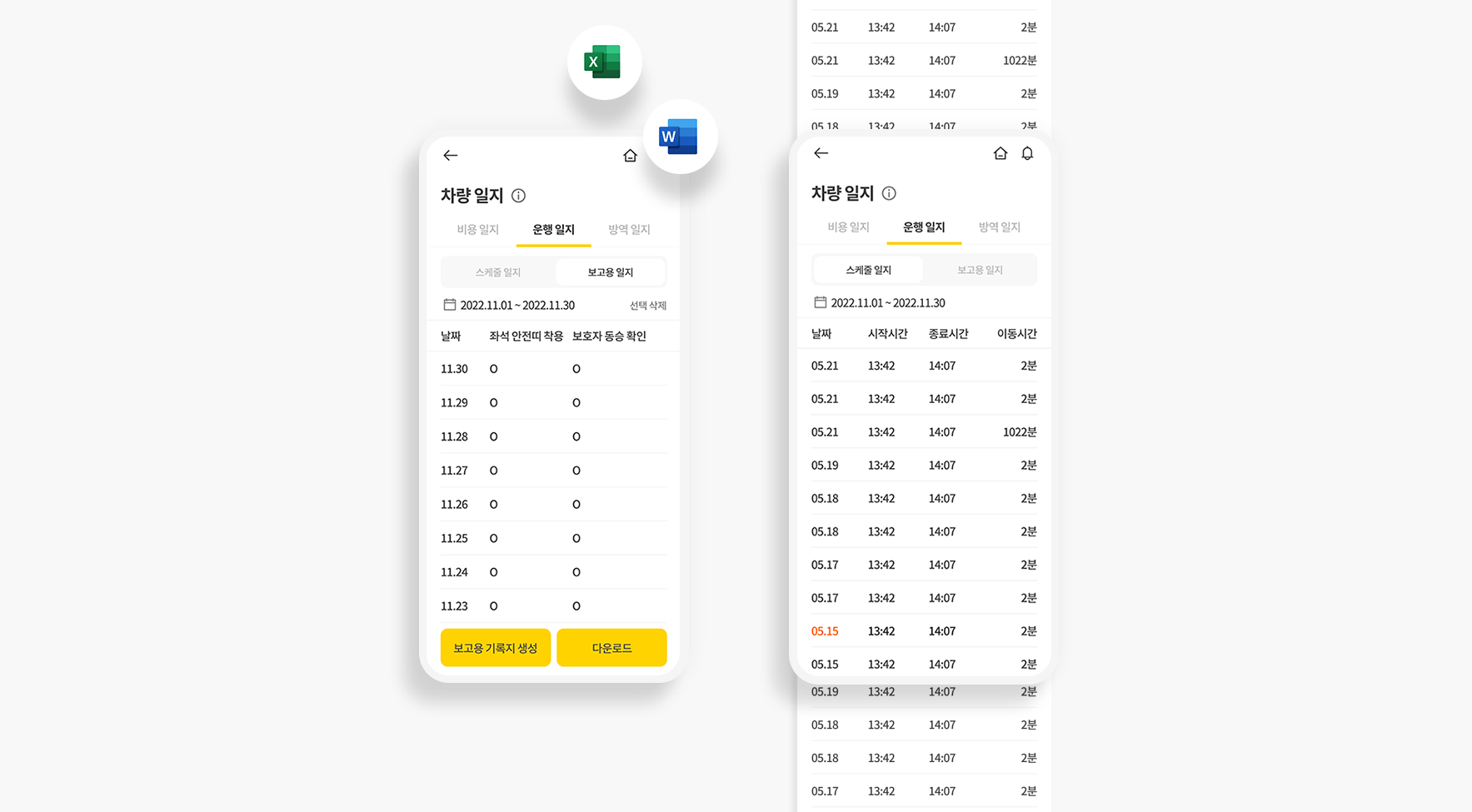 라이드에서는 보고용 운행 일지를 자동으로 생성합니다.